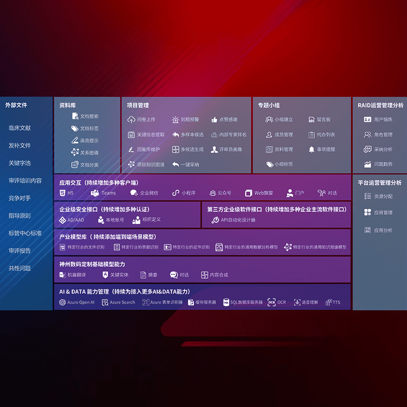 医疗器械产品上市前,,,,要熟悉严格与繁复评审标准,,,,整理分析监管机构指导文件中的海量信息。。。企业急需一个智能化解决方案,,,提升知识管理效率,,,,提高评审通过率,,,以提升其市场竞争力。。。